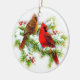 Ornamento cerâmico redondo com duas cenas bonitas (parte dianteira e parte traseira) de pássaros do natal vintage.