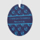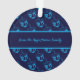 Na moda, adorno elegante para o seu decor HANUKKAH. O design mostra um impressão de sonho ciano em um padrão em série com texto personalizável de espaço reservado que você pode substituir por sua própria escolha de saudação e texto. O esquema de cores é azul e ciano da meia-noite. Outras versões estão disponíveis. Itens correspondentes podem ser encontrados na Coleção HANUKKAH por Designs Bereanos.