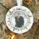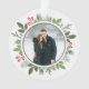 This gorgeous olive green with holly berry Christmas wreath encircles your holiday photo inside of a circle. A chic 2 sided Christmas ornament keepsake for a modern couple. Botanical leaves spring out of the beautiful photograph. Add a 2nd picture on the back.