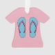 Uma ilustração de um par de chinelos de praia cor-de-rosa e azuis. É verão! O vamos faz uma pausa e diverte-te debaixo do sol. Você não está animado em preparar suas coisas para as férias? Não esqueça seus chinelos.