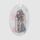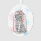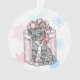 Ornamento Cinza de Natal Personalizado Gatinho, Arco Rosa