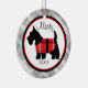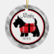 Ame seu animal de estimação pndo o ou a sobre sua árvore de Natal! Estes enfeites de natal têm um guingão cinzento, um fundo checkered com um círculo center esboçado no vermelho e um preto. Há um centro branco com um terrier escocês preto que veste uma jaqueta vermelha da xadrez. Personalize com nome e/ou ano. Verifique para fora o muito outro design que nós temos em nossa loja e outro armazenam demasiado: Kidsgalore e Skinsgalore