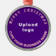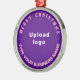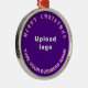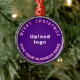 Feliz Natal! Encaminhamento redondo com textos saudáveis de Natal Feliz, nome e logotipo da sua empresa ou empresa. Design é textos cor-de-rosa sobre fundo roxo. Ornamento para decorar a árvore de Natal em sua loja, compro ou escritório. Ornamento para receber visualmente seus clientes nesta temporada de feriados e anunciar sua empresa ou promover seu nome de marca. Personalize-o e use-o para criar reconhecimento de nome de marca. Verifique a aparência após carregar o logotipo e digitar textos. Se a aparência lhe agrada, você pode colocar seu pedido agora. Se você precisar redimensionar e mover o logotipo e os textos para o ajustado neste ornamento ou em outros estilos que você escolher, mude na ferramenta design. Você também pode fazer outras alterações de acordo com sua preferência na ferramenta design, como alterar a cor do fundo, a cor da fonte e o estilo da fonte. Feliz Natal! Desejo mais vendas para você neste feriado.