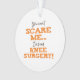 Uma ideia de presente de recuperação de procedimento cirúrgico humorístico que diz "Você não pode me assustar eu já fiz cirurgia!"
