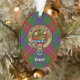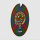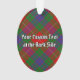 Crachá da crista de clã Fraser cercado por uma correia e fivela sobre fundo de tartã. Texto personalizado de ambos os lados.