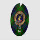 Crachá da crista Clan Gunn rodeado por uma correia e fivela sobre fundo tartano. Texto personalizado de ambos os lados.
