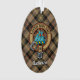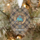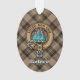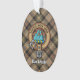 Crachá da crista Clan MacKenzie cercado por uma correia e fivela sobre o fundo marrom de tartan caçador. Texto personalizado de ambos os lados.
