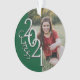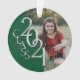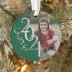 Prata e verde, ornamento fotográfico de graduação 2021 com elegante "classe de 2021", design de aparência metálica falsa. Mostrados em verde e prata, formandos e seus pais vão adorar este ornamento de manutenção de fotos de formatura unilateral e vão tesourá-lo sempre. Personalize este ornamento cerâmico redondo com foto de um lado e texto do outro ou remova o texto personalizado e adicione uma foto de segundo ao outro lado.