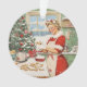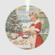 Numa cozinha confortável e coberta de neve, a Sra. Claus é capturada no meio de assar de férias. Vestida com um vestido vermelho festivo com capas aparadas de pele, e um avental correspondente, ela sorri muito bem enquanto prepara um novo lote de biscoitos. A cena é cheia de alegria natalícia, completa com uma árvore maravilhosamente decorada, enfeitada com canas doces e ornamentos vermelhos, enquanto a neve suavemente cai fora da janela, adicionando à atmosfera mágica da estação.
