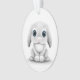 Características deste design adoráveis um coelho branco pequeno do bebê com as grandes orelhas flexíveis. O coelho está sentando-se para baixo com suas patas ao lado de se e está olhando-se para a frente com sua cabeça inclinada leve a um lado. O corpo principal e pequeno feito sob medida excedente junto com os detalhes na pele cria uma combinação bonita de uns desenhos animados e de um olhar realístico. Este design original é perfeito para todos os amantes do coelho e do animal de estimação de coelho.