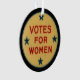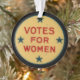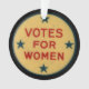 Votos para mulheres! Estes enfeites de natal são parte de uma série comemorativa que comemoram o 100th aniversário da 19a alteração. A parte dianteira caracteriza uma imagem de um pino histórico icónico do movimento do suffragette e a 19a alteração é escrita na parte traseira. Este presente é certo ser apreciado por todas as mulheres fortes em sua vida!