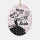 Os anos 50 retros bonitos galão que vestem uma polca preto e branco pontilharam o vestido que mostra fora seu anel de noivado gigante. O rosa afligiu o fundo do diamante. Texto customizável! A maneira do divertimento de deixar o mundo conhecê-lo obteve o o anel e é casando. Original de PinkInkArt!