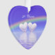 Ornamento com minha imagem de corações pérolas flutuando na água sob um arco-íris com texto personalizável.