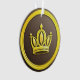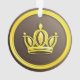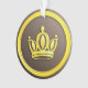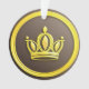 Uma coroa dourada lindamente decorada com desenhos intrincados circundada por um padrão floral, simbolizando realeza, luxo e celebração, colocada contra um fundo suave e neutro que realça sua elegância régia.