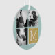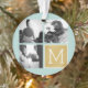Fundo de impressão em verde-menta e dourado - Use 3 fotos quadradas para criar um presente de aniversário único e pessoal. Adicione as iniciais da noiva e do noivo. Se precisar ajustar as fotos ou monogramas, clique na ferramenta de personalização para fazer alterações.