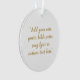 Crie seu próprio ornamento acrílico de citação personalizado com sua citação inspiradora favorita, letra de música de Natal ou texto personalizado em tipografia de caligrafia de script em cor dourada em fundo branco.