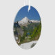 O pico coberto de neve do Monte Baker sobe acima das serras ao redor em um céu azul claro. Abaixo da montanha, árvores verdes ficam altas diante de um pequeno lago alpino. O lago tem uma bela cor de turquesa, como muitos lagos de montanha. O Monte Baker, também conhecido como Koma Kulshan ou Kulshan, é um vulcão proeminente nas Montanhas Cascata do estado de Washington. Uma das crateras explode vapor. Traga esta paisagem maravilhosa do Noroeste do Pacífico para suas celebrações de Natal com este ornamento. Basta mudar a data para ler o ano atual — ou o ano em que você visitou a paisagem das Cascades do Norte. Esta foto cênica também está disponível em ornamentos em outras formas divertidas. Aproveite a escolha do seu favorito.