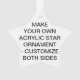 Custom printed personalized STAR ACRYLIC CHRISTMAS TREE ORNAMENT DECORATION Blank Template - 2.78" high x 2.65" wide x 0.187" thick. Design, create, make your own. Your photo, image, text, logo, graphics in full color print on both side of the ornament, using the AcryliPrint®HD printing process. Made of ultra-durable acrylic.