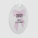 Ornamento Custom Photo Baby's First Christmas YEAR Pink Bow