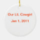 Maneira maravilhosa de reconhecer o nascimento de um bebé. Dê-o como um presente ou mantenha-o para o senhor mesmo. Adicione o nome da criança na data da parte dianteira e de nascimento na parte traseira. Caracteriza a vaqueira pequena do vintage.