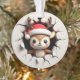 This delightful, double-sided ornament showcases an adorable 3D reindeer. The front features it playfully peeking from a cracked opening, radiating holiday cheer with its red Santa hat and antlers. The back complements this, showing the reindeer from behind. This charming piece offers a full festive view, perfect for your holiday tree.