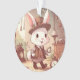 Ornamento Cute White Rabbit Wonderland Whimsical Timekeeper