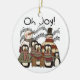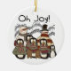 Dois bonecos de neve e cinco pinguins cantam canções de natal do feriado e o texto lê "oh a alegria!" em ornamento do feriado da lembrança.