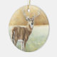 Este ornamento caracteriza uma reprodução de meu desenho de lápis colorido original de um cervo de whitetail.