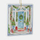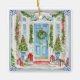 retrato aquoso de uma porta fofa numa varanda da frente decorada para o Natal