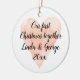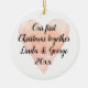 1rua de Natal juntos ao redor do ornamento da árvore de Natal. Condecorações de Férias Personalizadas para o primeiro Natal do casal juntos. Elegante design com coral cor-de-água rosa, símbolo de amor cardíaco. Belo modelo de tipografia de pincel manuscrito. Adicione seus próprios nomes, data e saudação. Carregue sua própria foto no verso, opcionalmente. Bela ideia de presente para recém-casados, noiva e noivo, marido e mulher, namorado e namorada etc.