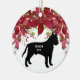 Silhueta doce da raça do cão do pitbull com poinsétias da aguarela.  Adicione seu nome de animal de estimação e o ano (ou anos do nascimento/morte para um ornamento memorável).  Outro produz disponível em nossa loja.  Contacte por favor o desenhista em info@lemontreecards.com para pedir uma raça não mostrada em nossa coleção.