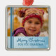 Ornamento da avó do Feliz Natal customizável com sua própria foto de família na luz elegante - flocos de neve e teste padrão festivos azuis das listras. Um presente à moda do Natal para a avó esta época natalícia.