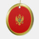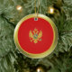 Ambos os lados deste ornamento caracterizam a bandeira de Montenegro morphed em um círculo com uma borda dourada. Decoração montenegrina simples para sua casa.