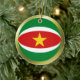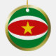 Ambos os lados deste ornamento caracterizam a bandeira de Suriname morphed em um círculo com uma borda dourada. Decoração surinamense simples para sua casa.