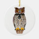 A parte dianteira deste ornamento mostra um desenho detalhado de uma coruja que veste um lenço de pescoço do tartan de McLaren, quando o texto na parte traseira puder ser editado para encontrar suas necessidades.
