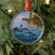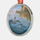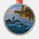 De uma pintura a óleo original por Brenda Thour de dois mergulhões-do-norte em um lago no por do sol com o um mergulhão-do-norte que bate suas asas. Copyright por Brenda Thour 2004.