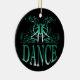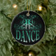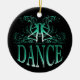 O design impressionante da dança no verde contra um fundo preto austero neste ornamento é certo atrair a atenção. Este ornamento maravilhoso é perfeito para todos os dançarinos ou professores da dança. A parte traseira está deixada vazia para que você adicione sua própria mensagem ao receptor, se você gosta. Use simplesmente "personalizam-no!" abotoe para alcançar o editor em linha do produto para personalizar este presente. ©Studio Miyabi www.Gifts4Dancers.com