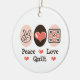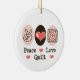 O símbolo de paz, o coração e o quadrado estofando do tecido com corações e flores no marrom cor-de-rosa e escuro em camisas da edredão t, em roupa, em roupa e em mais mercadoria fazem um presente bonito para o quilter ávido.
