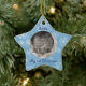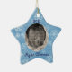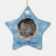 Comemore o primeiro Natal do seu bebê com este ornamento dado forma estrela da foto que é decorado com flocos de neve de queda e pode ser personalizado com a foto do seu bebê. Lê "meu ø Natal" e pode ser personalizado com o ano em curso.