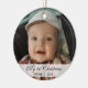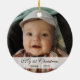 Este ornamento simplesmente elegante do bebê da foto com o nome, a data, e a foto. Aperfeiçoe para o primeiro Natal de um bebê! Grandes presentes para pais novos!