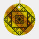 Três estilos de fractals desenhados mão, incluindo triângulos de Siepinski, gaxetas de Apollonian, e um design quadrado similarmente temático, compo as camadas desta mandala geométrica, cobertas em um inclinação amarelo e alaranjado brilhante.