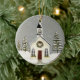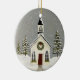 A mão pintou design de uma cena de igreja serena no inverno.