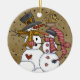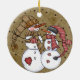 Os bonecos de neve com meia e os chapéus altos contra um cheio do céu das estrelas em uma lembrança ornament que os amantes do boneco de neve são certos se deleitar dentro!