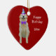 Este ornamento caracteriza um golden retriever que veste um chapéu do partido. O texto customizável é texto existente disponível ou da supressão.