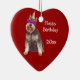 Este ornamento caracteriza um Schnauzer diminuto que veste um chapéu do partido. O texto customizável é texto existente disponível ou da supressão.