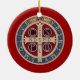 O design é o mesmo em ambos os lados do ornamento. É meu próprio redesenhar da versão do "jubileu" da medalha de St. Benedict, uma versão projetada recentemente em 1880 sob a supervisão das monges do monastério do licor beneditino de Montecassino, Italia, marcar o 1400th aniversário do nascimento de St. Benedict.