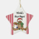 O ornamento customizável do feriado da lembrança do design do urso de ursinho da melhor papá do mundo caracteriza um urso de ursinho com luzes do feriado e um boné de meia e uma área na parte de trás do ornamento onde você pode facilmente a personalizar com um nome e um ano ou uma data ou o outro texto!