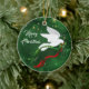 Personalize e clareie sua árvore de Natal com este lindo Enfeites de natal de "Um dos Tipos" de Portas Brancas! Ela apresenta uma pomba branca de Natal voando em um fundo verde entre as estrelas de Natal Douradas e o Carregando de oliva com fitas vermelhas e verdes fluindo, desejando a todos um ..."Feliz Natal! Esta é uma Design de Arte Original do Artista Kerry Miller."