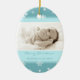 O Feliz Natal avó e vovô ornament customizável com sua própria foto de família em azul elegante e no branco com teste padrão festivo dos flocos de neve. Um presente à moda do Natal para avós esta época natalícia.