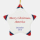Vermelho, whhite e enfeites de natal patrióticos azuis com EUA no centro, em um motifon da bandeira dos Estados Unidos a parte dianteira. Na parte traseira, nas palavras "Christmad alegre, em América" e em "dezembro de 2010," ambo podem ser mudados se desejados.